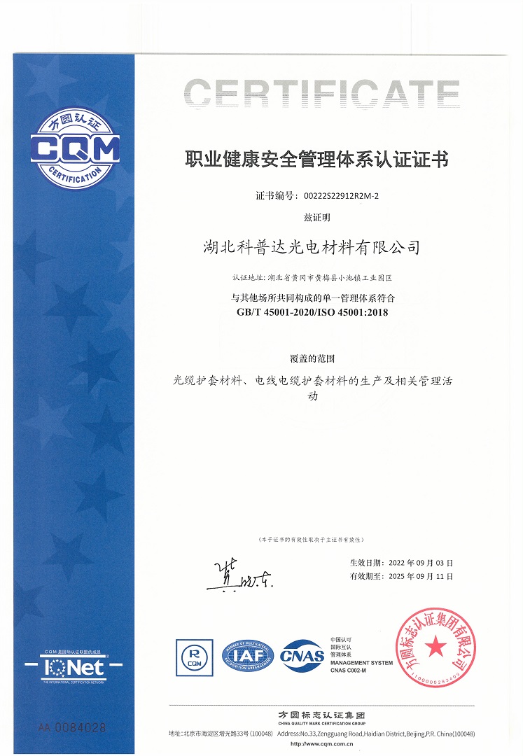 (光電公司)職業健康安全管理體系認證證書