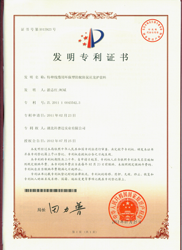 下一篇:專利證書